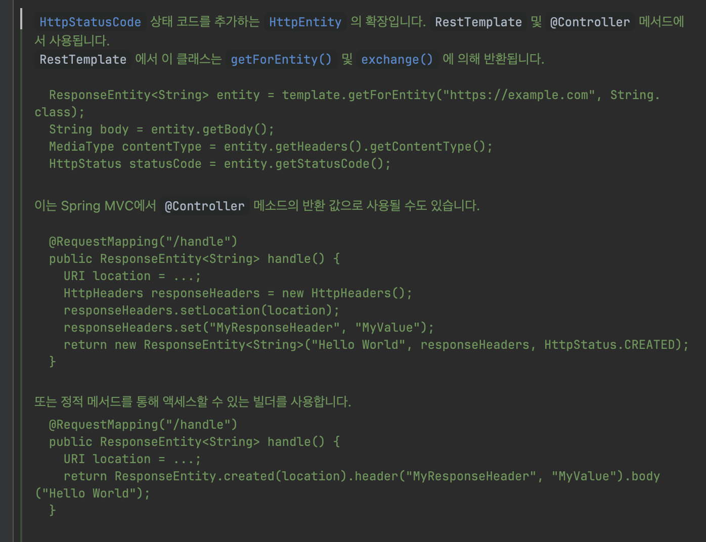 2. ResponseEntity의 java doc에서 해당 클래스가 사용되는 특정 상황을 나열했다는 점