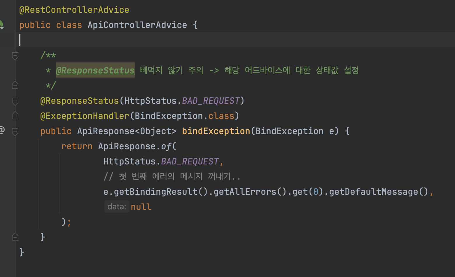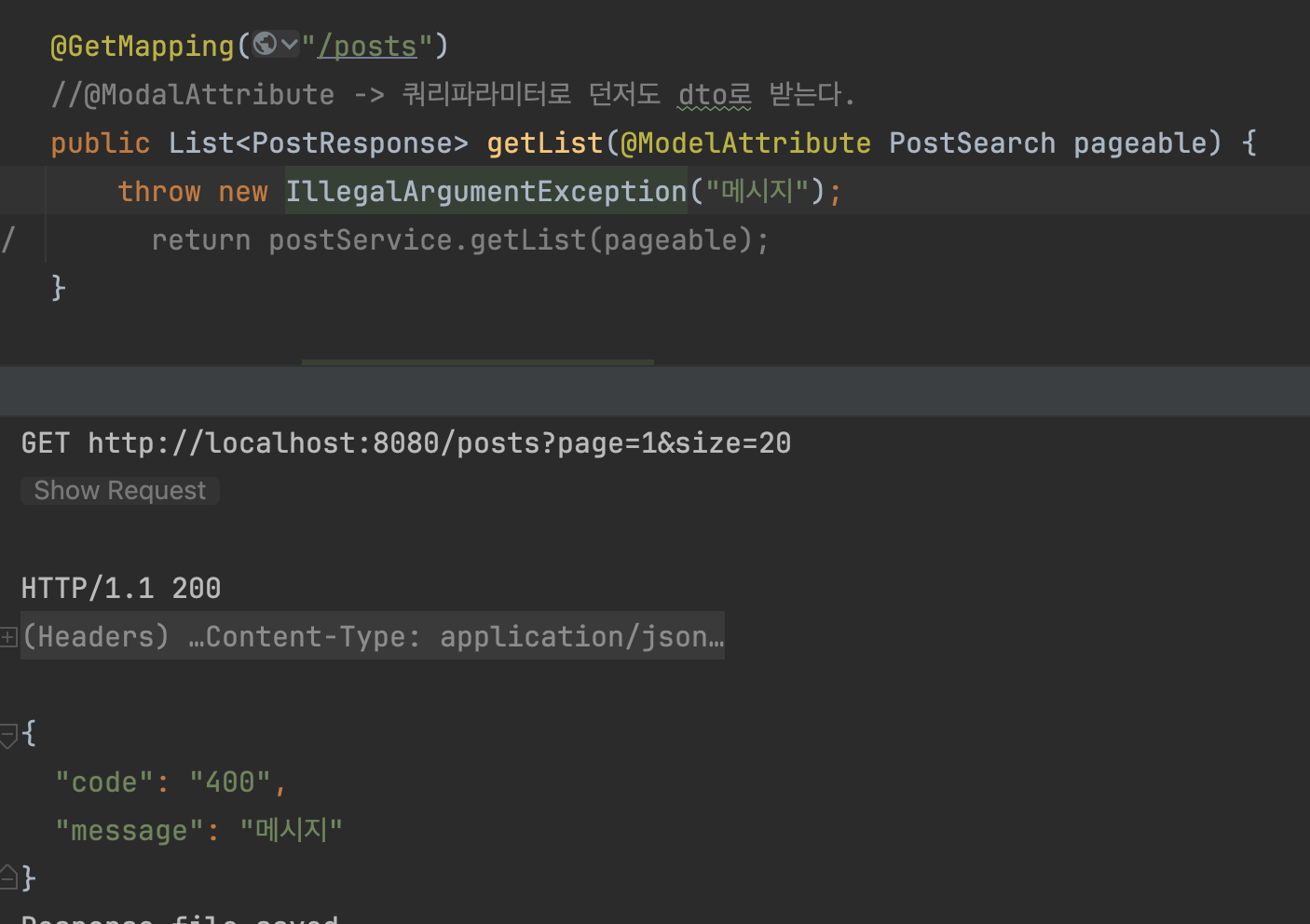 위처럼 ResponseEntity 내부의 status를 직접 수정하는 방법이 있습니다.