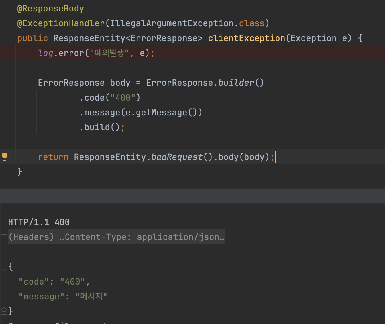 @ResponseEntity는 body만 담아주기 때문에 body의 필드로 code:400 값을 넣어준 것과는 별개로 HTTP status 200 응답이 내려왔습니다. 왜 일까요?