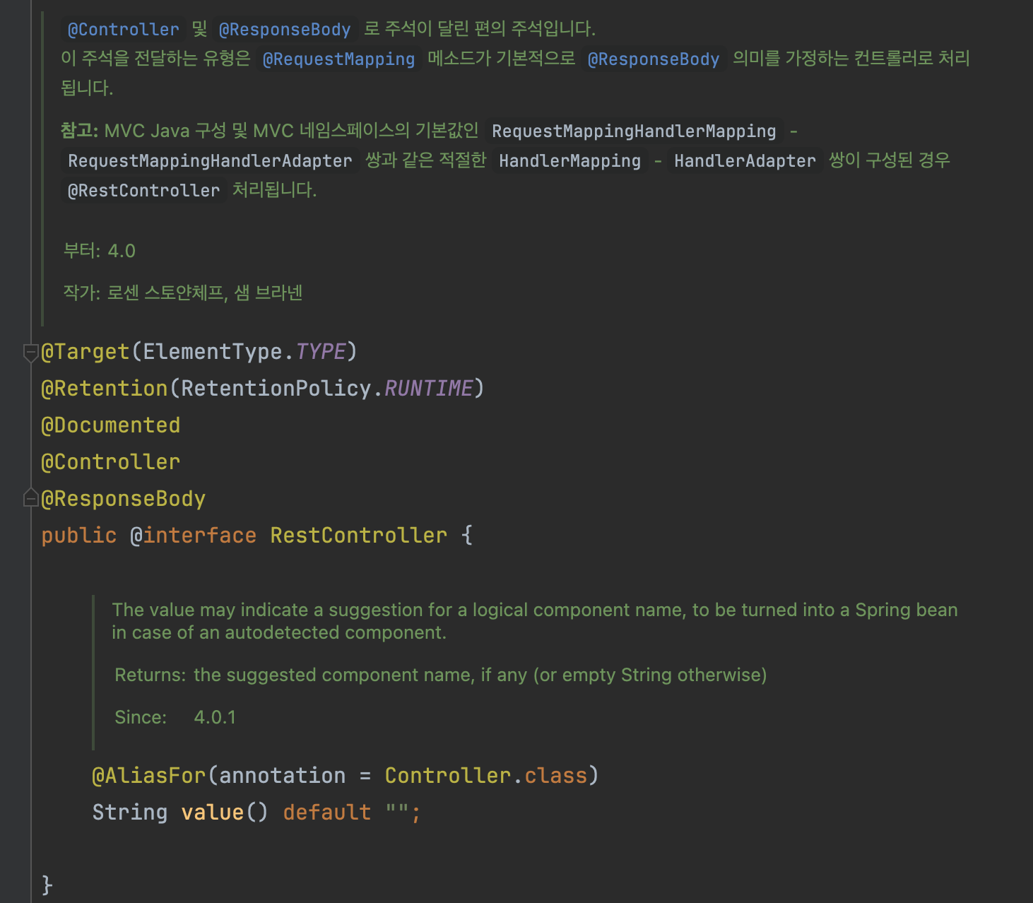 위의 자바독을 보면 RestTemplate, @Controller에서 사용된다고 명시되어 있습니다.