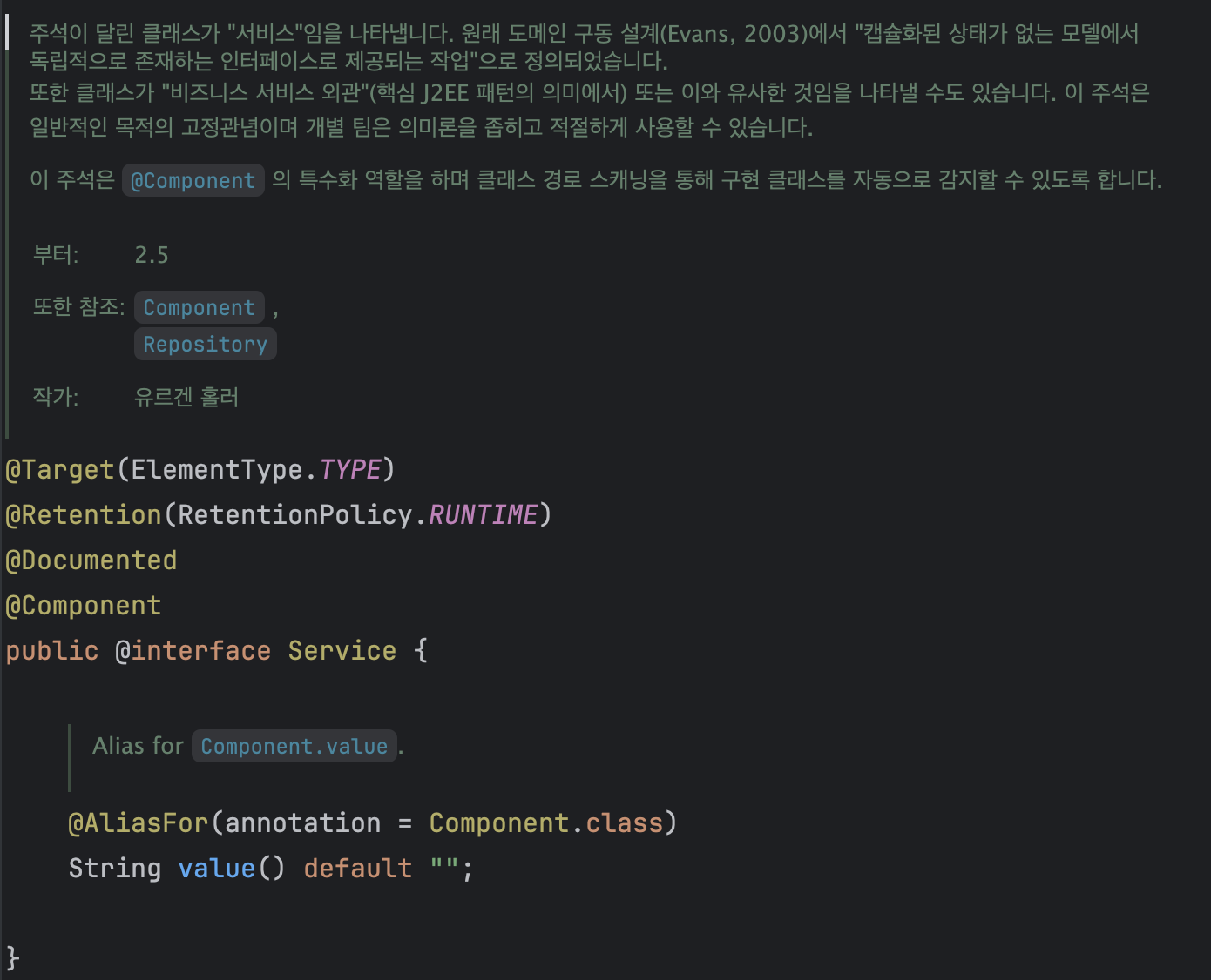 @Service의 자바독 요약