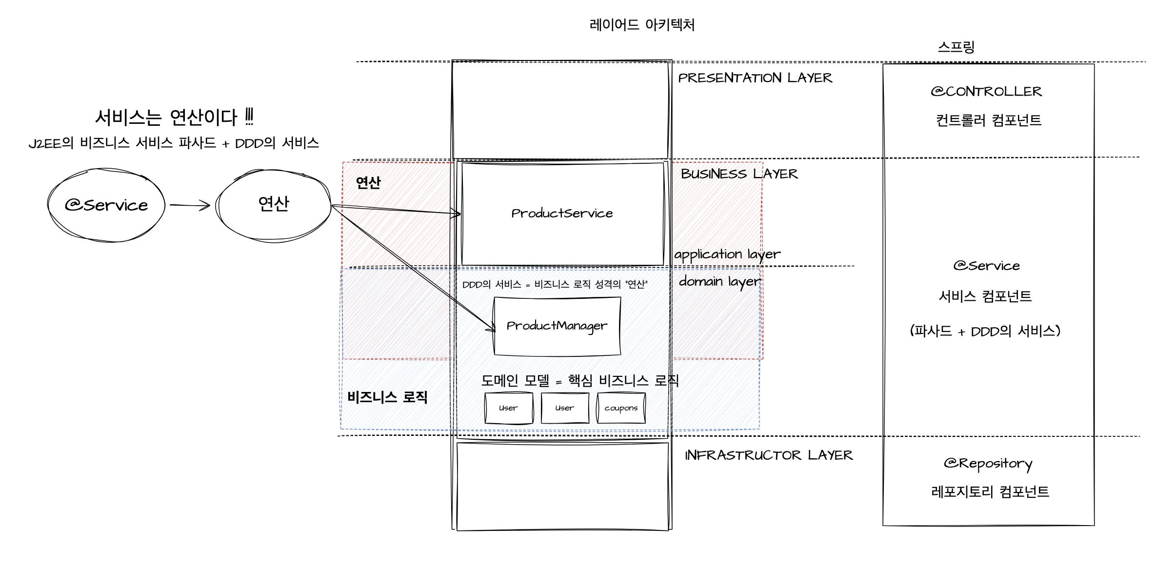 - @Service는 에릭 에반스의 DDD에서 영감을 받아 만들어진 애너테이션