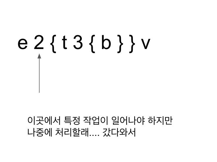 위의 종료조건 코드에선 '}'라는 문자를 만나면 특정 작업을 수행하게 하였는데요,
